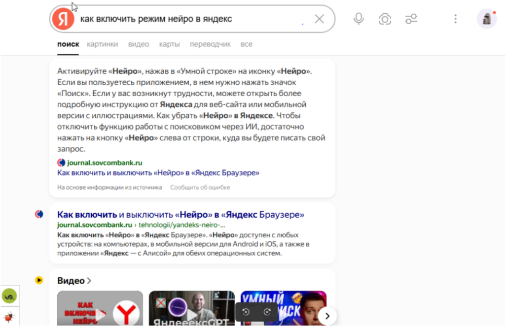 AI-обзоры — это блоки в поисковой выдаче, которые формируются нейросетью на основе сразу нескольких источников. В Google AI-обзоры доступны не во всех регионах и тематиках. Доступ зависит от раскатки функций. В «Яндексе» нужно включить режим «Нейро» в «Яндекс Браузере» или «Яндекс — с Алисой». Они не заменяют обычные сниппеты, а появляются над ними, занимая верхнюю часть экрана. По сути, это короткий аналитический ответ поисковой системы, который даёт пользователю информационную выжимку: несколько абзацев текста, ссылки на источники, иногда — изображения или видео.